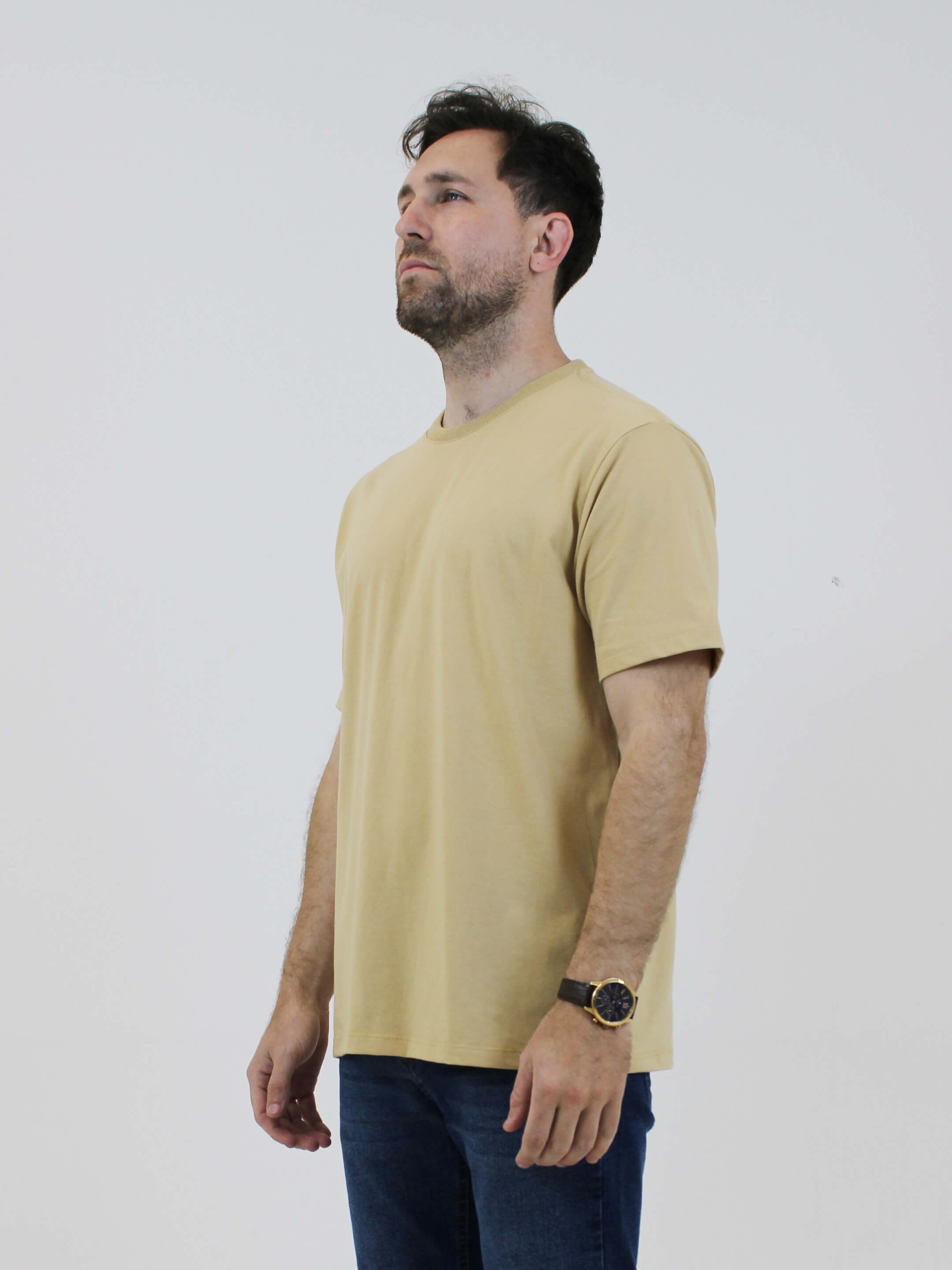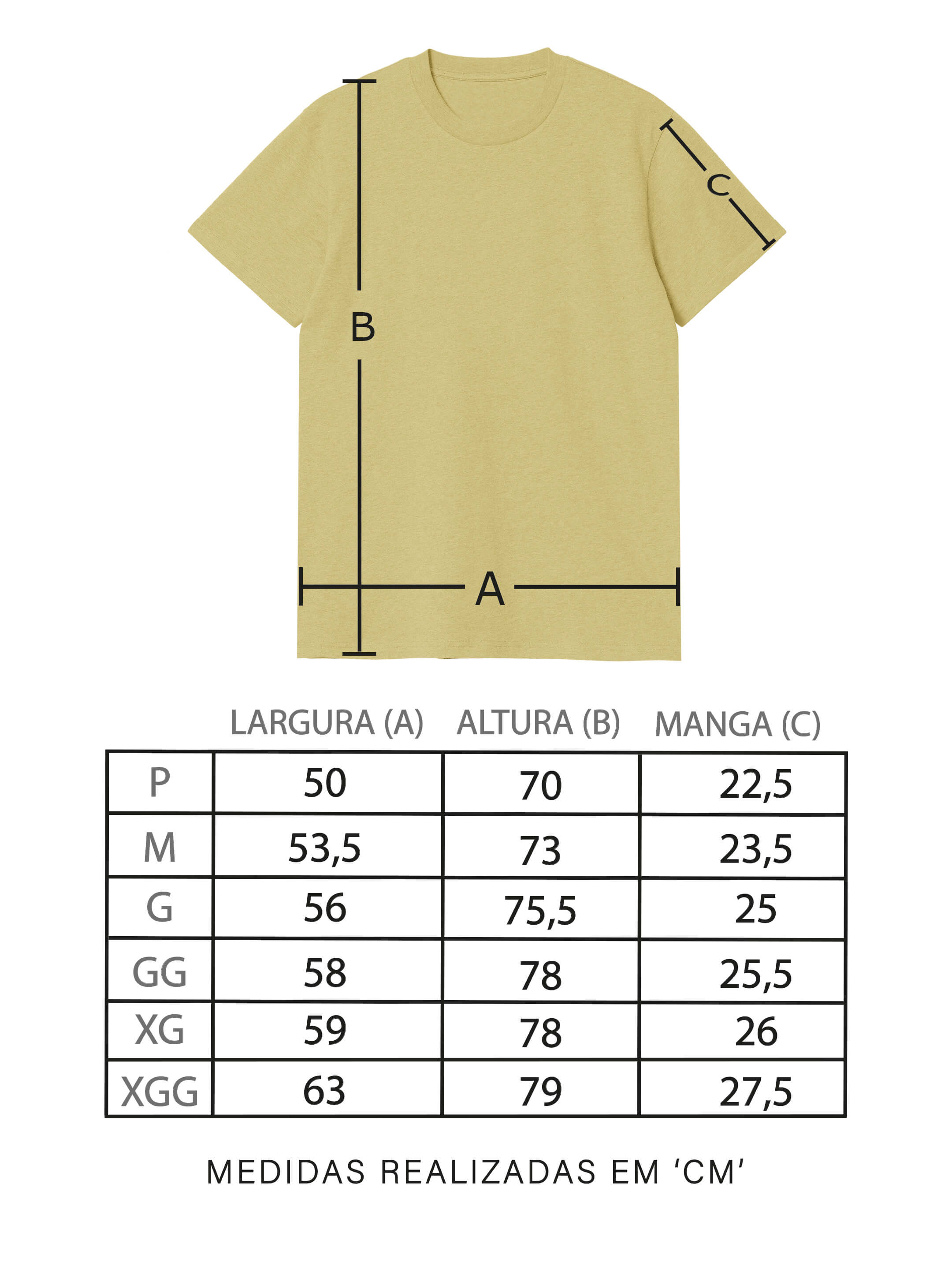 Camiseta Básica Areia, disponível no P, M, G, GG, XG e XGG. Produzida em modelagem mais padrão para o dia a dia e com extrema qualidade.