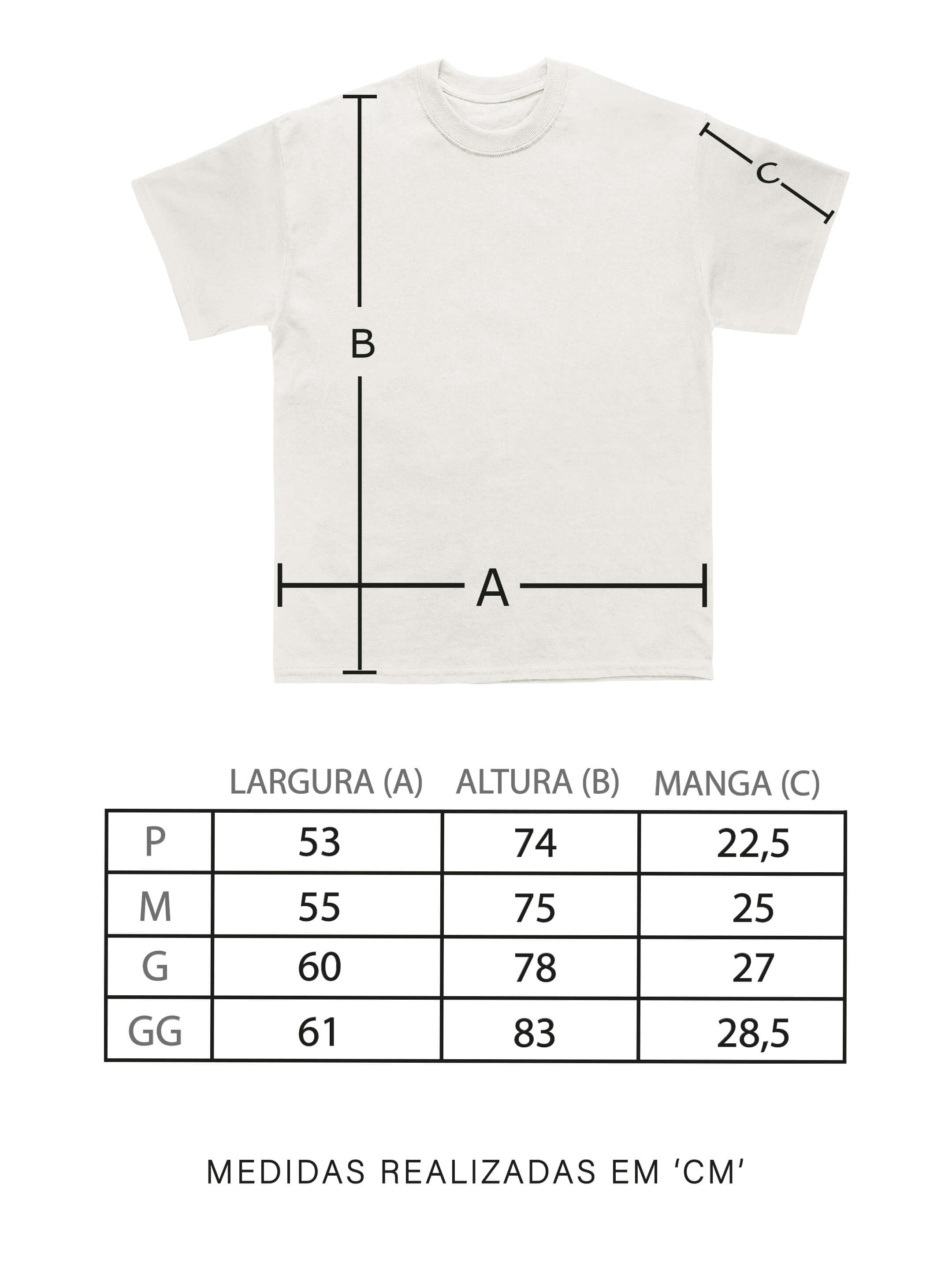 A modelagem oversized consiste em ser maior que modelagem convencionais. Recomendamos pegar o mesmo tamanho para manter a proposta. Caso prefira peças mais ajustadas, recomendamos pegar um tamanho abaixo do que costuma usar.