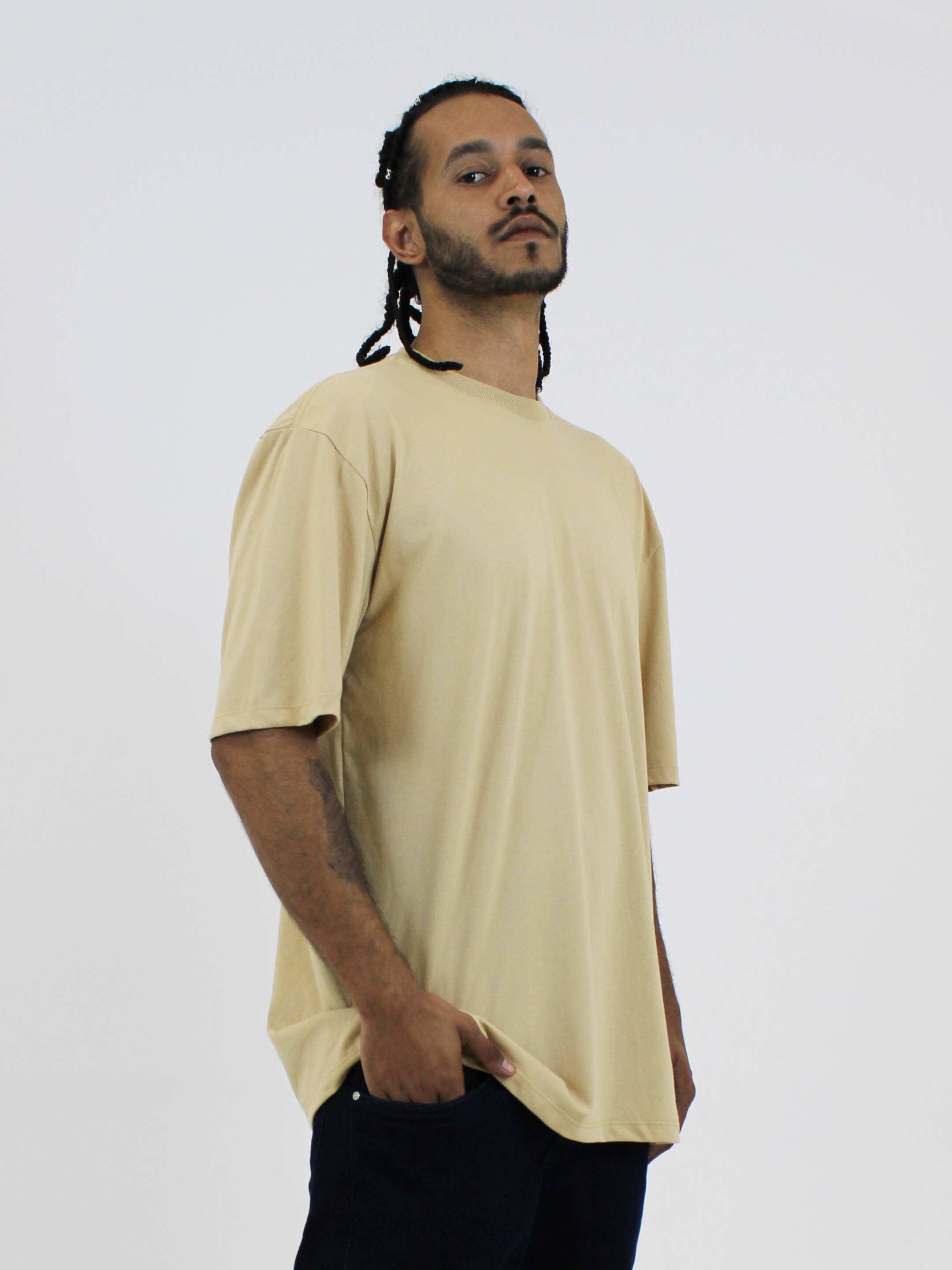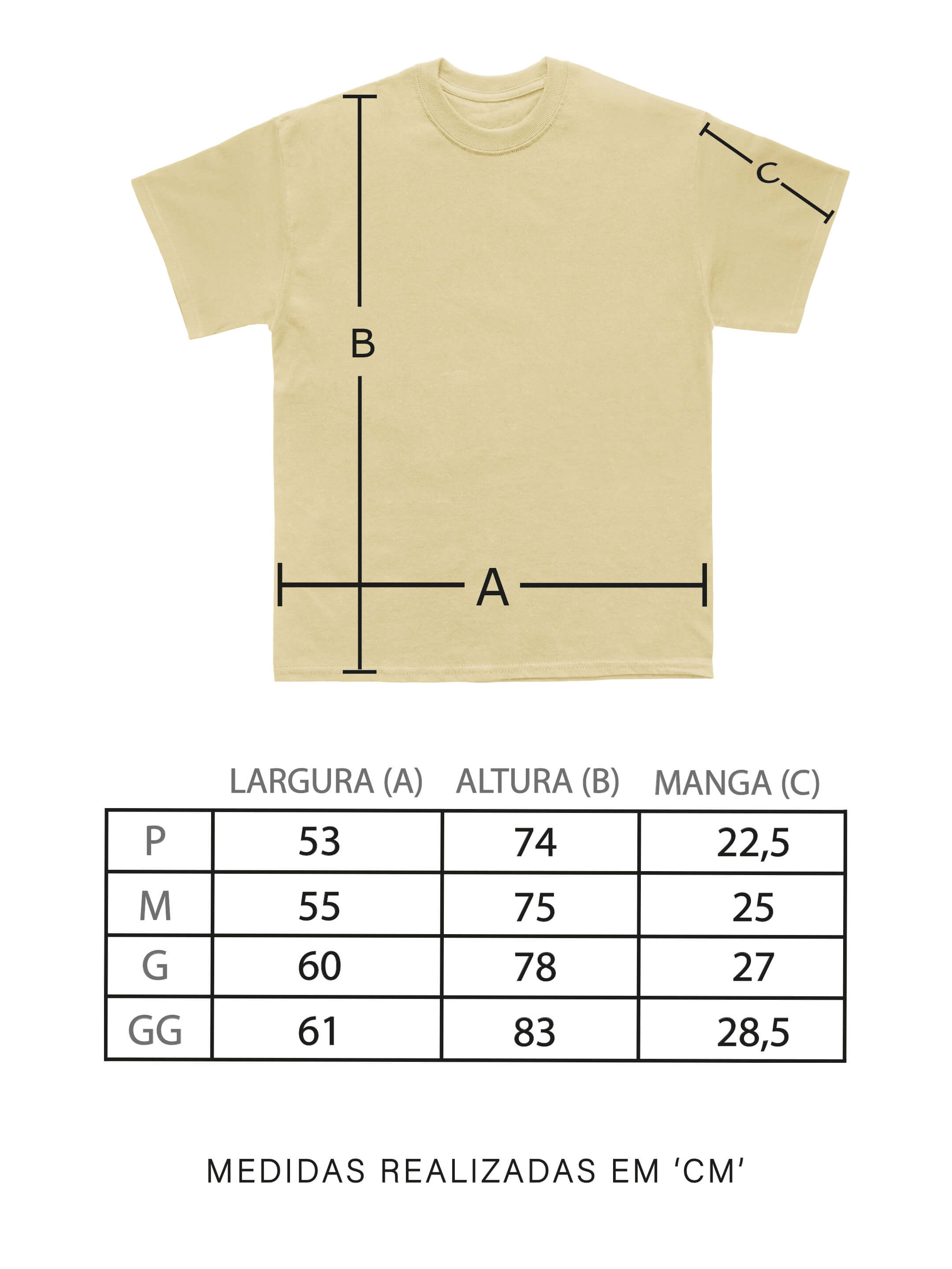 Camiseta Street Areia, disponível no P, M, G e GG. Produzida em modelagem Oversized e com extrema qualidade.